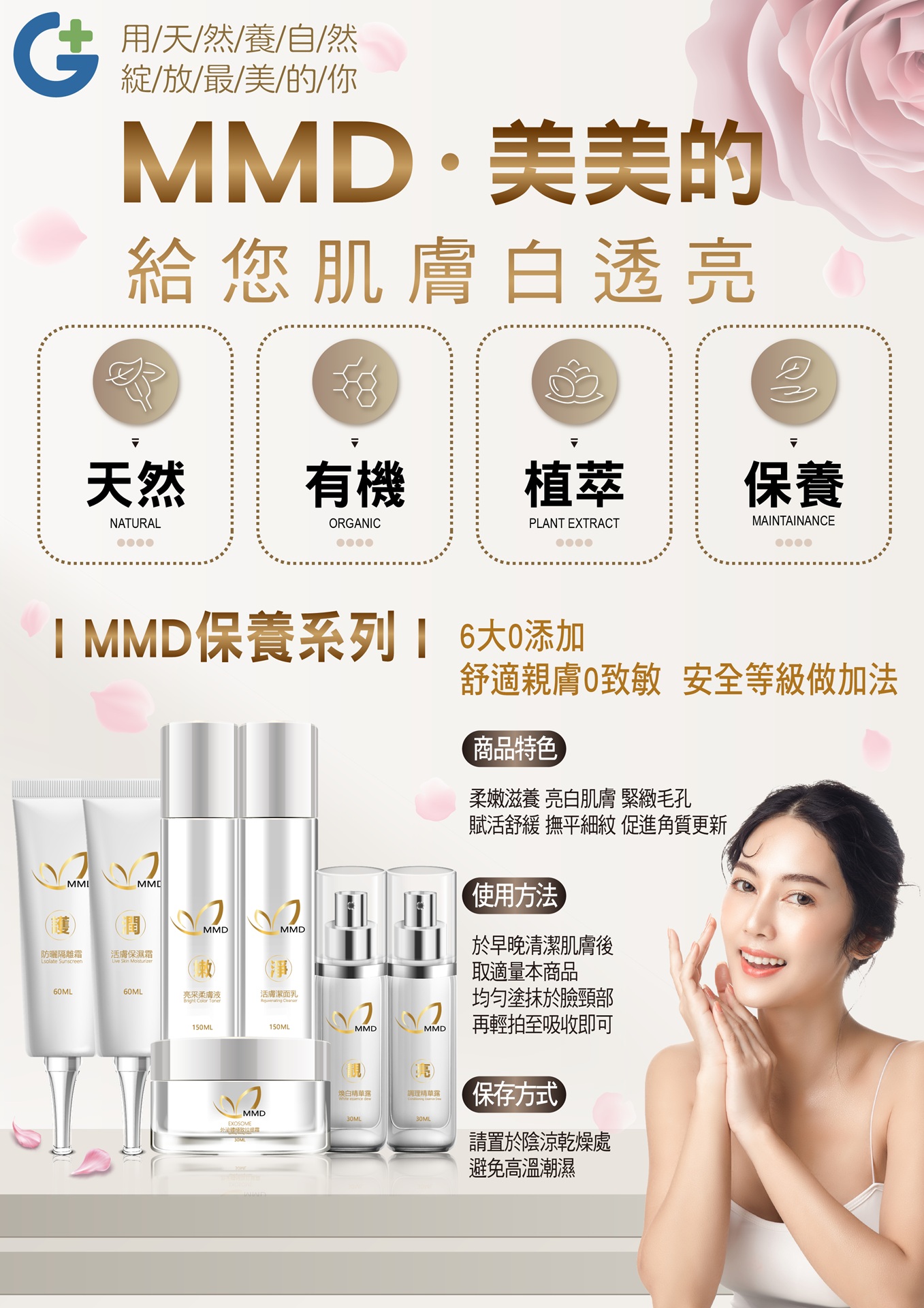 想要肌膚水潤、緊致毛孔就來試試MMD天然植萃保養品