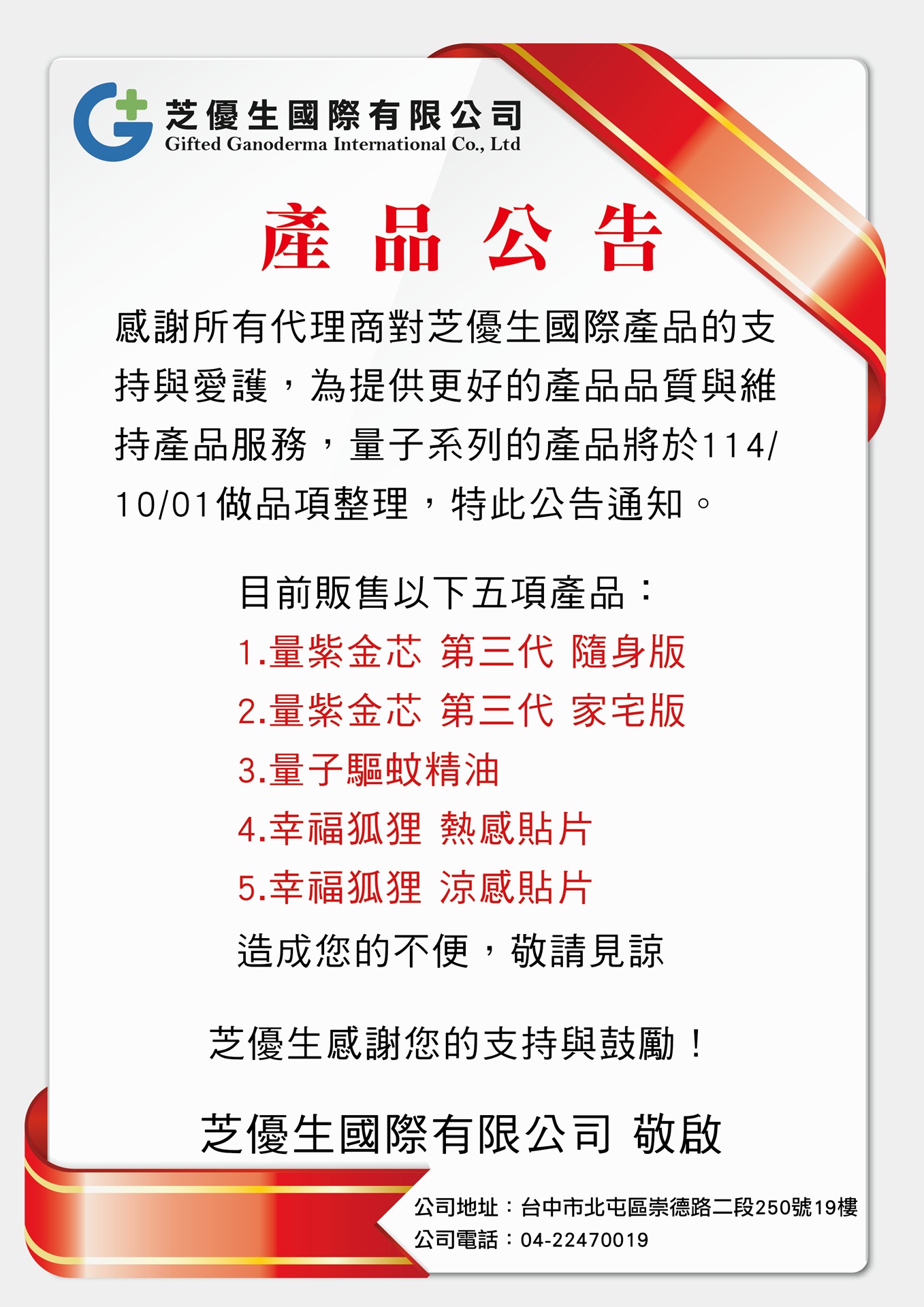 產品調整公告